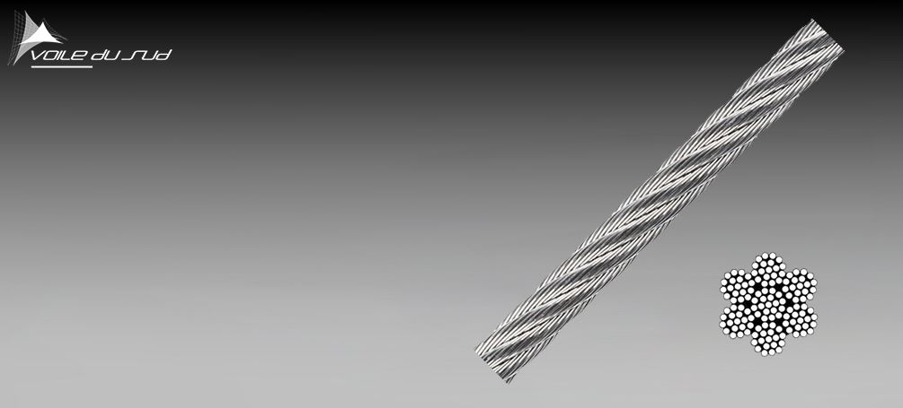 Nos voiles sont entièrement câblées sur leur pourtour avec un câble en inox 316L, multibrins torsadés. Le diamètre du câble est adapté aux dimensions de la voile et aux sollicitations des éléments extérieurs (mise en tension, vent, etc.) : 3 mm si le périmètre est inférieur à 25 mètres linéaires et 4 mm au-delà.
